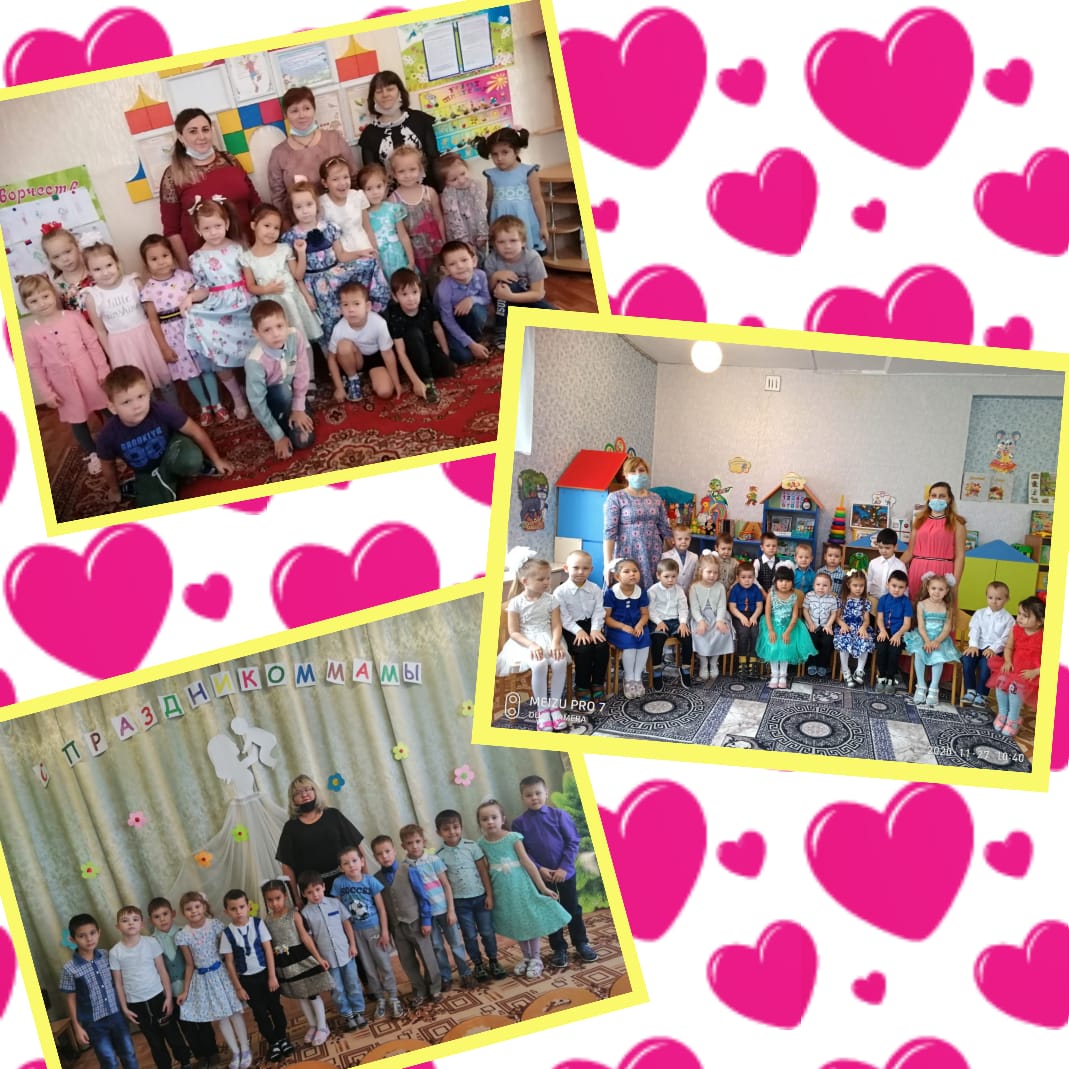 Дню Матери была посвящена эта неделя в нашем детском саду. Дети говорили о профессиях, о домашних заботах своих мам, рисовали портреты,разучивали песни и стихи о мамах, записывали поздравительные видеоролики. Вместе с родителями участвовали в творческом конкурсе "Пусть всегда будет мама!" А итоговым мероприятие были утренники, посвящённые Дню матери, проведённые в офлайн режиме.